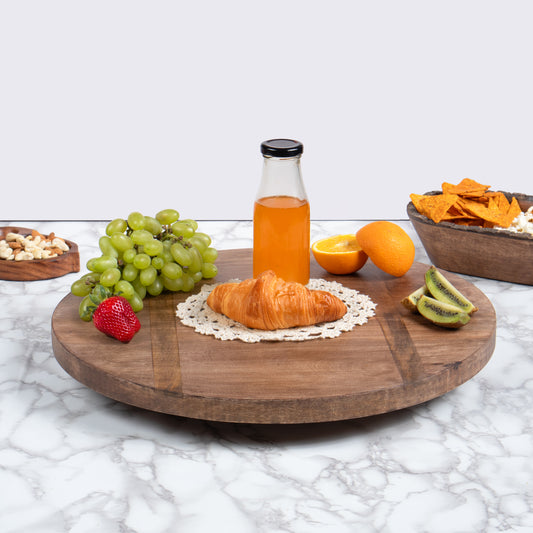 Large Rustic Wood Lazy Susan – Rotating Centerpiece