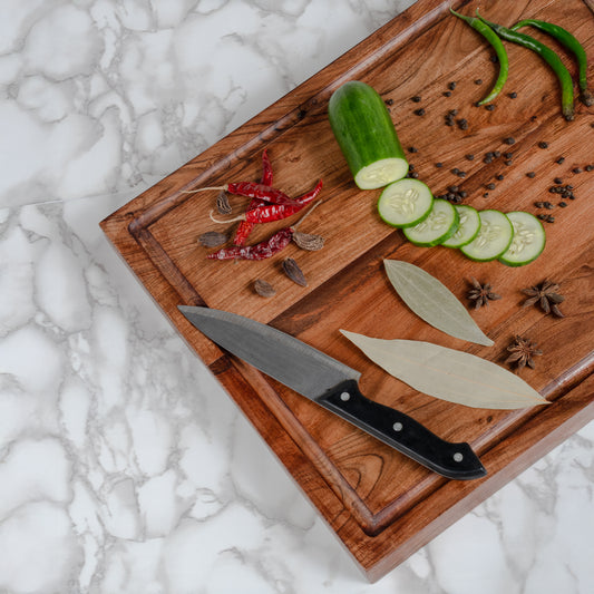Handcrafted Acacia Wood Cutting Board with Handle-Large