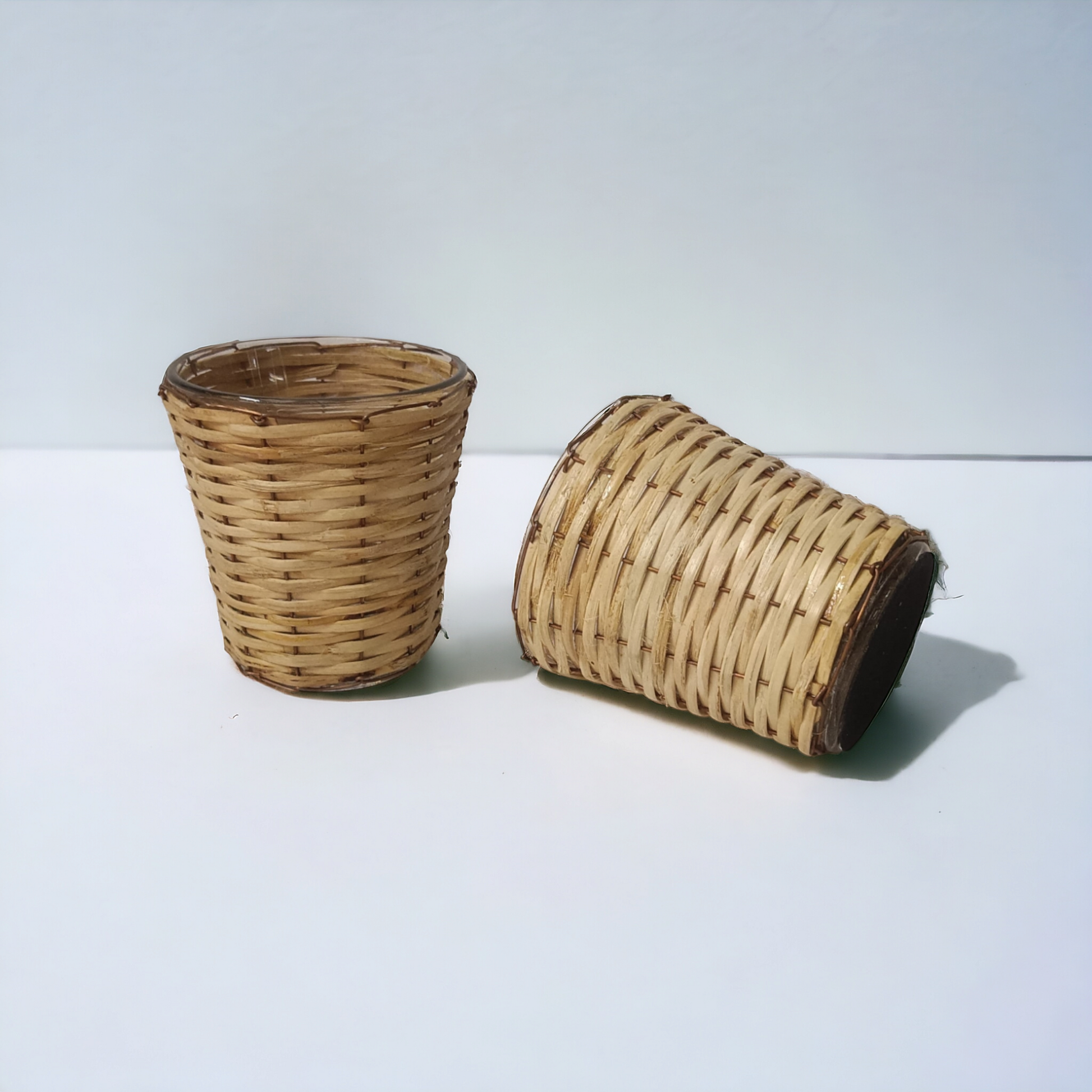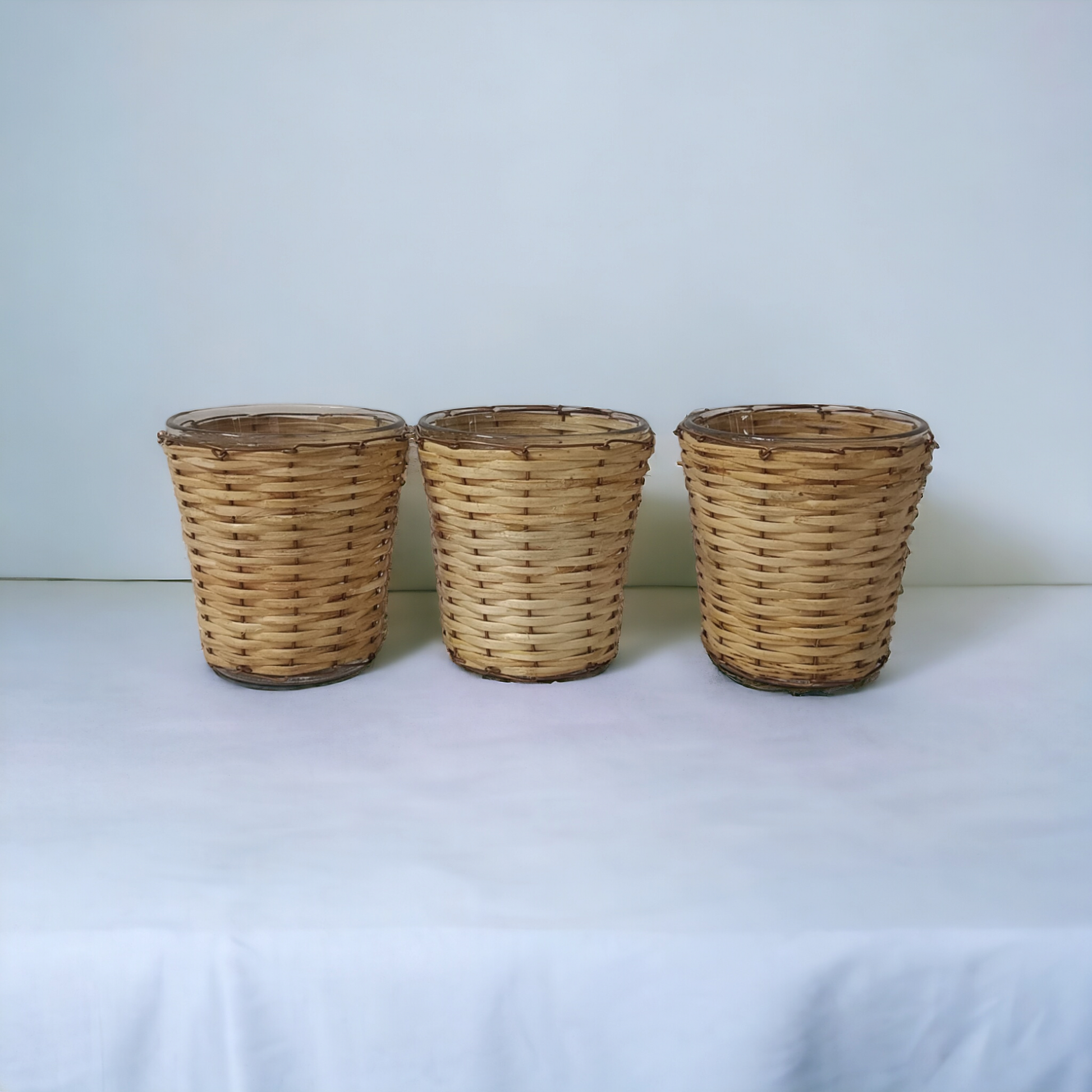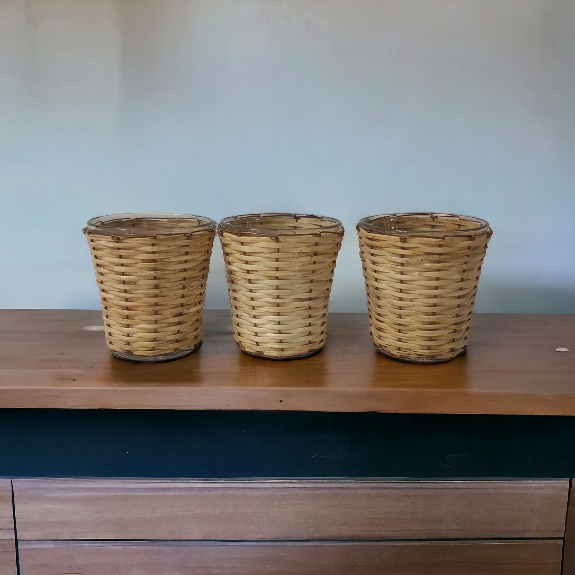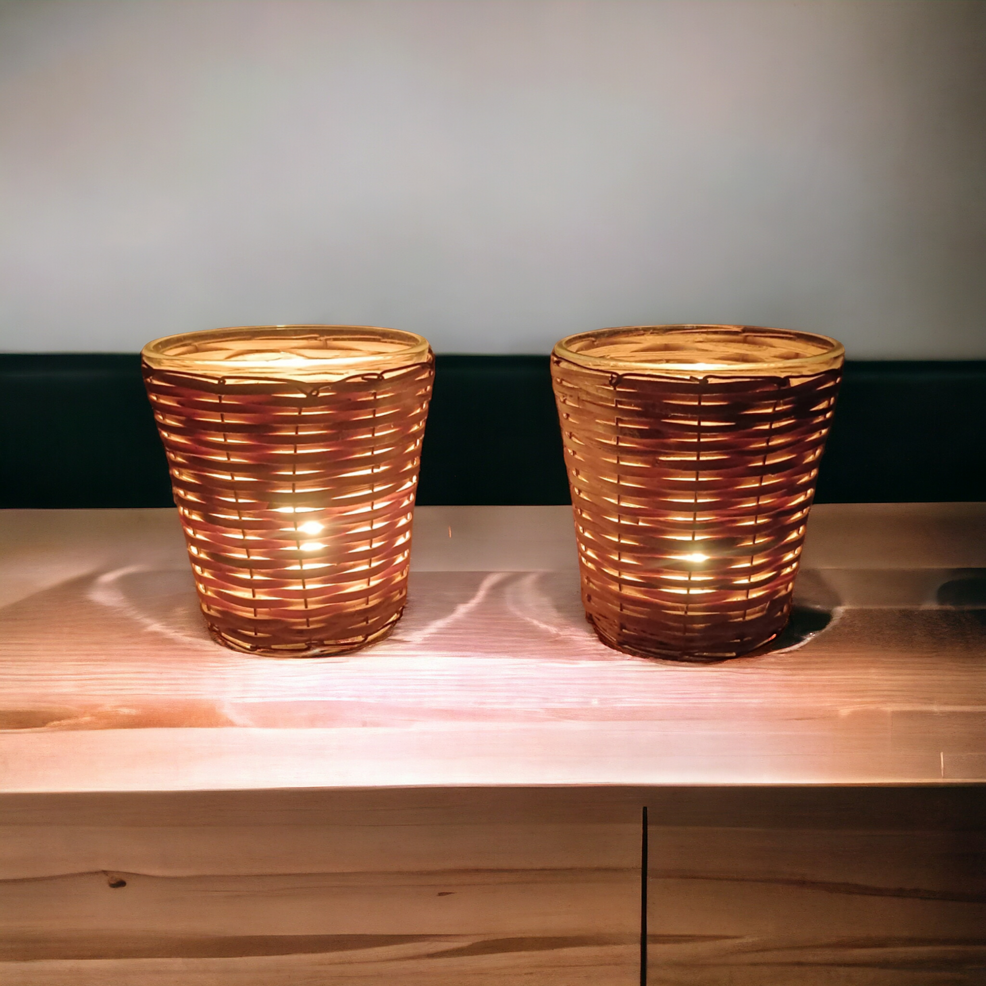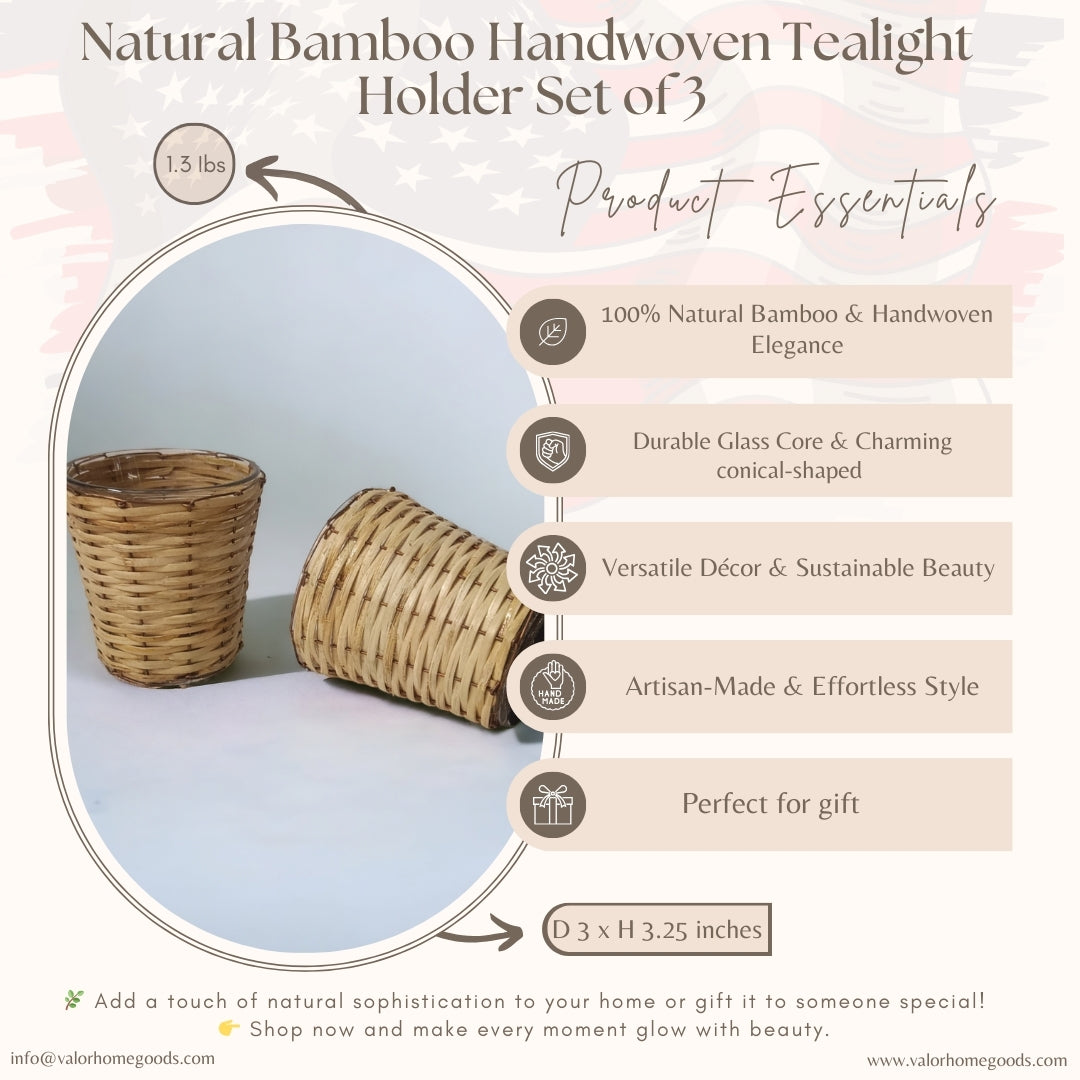 Mini Decorative Bamboo Tea Light Holders Gift Set of 3