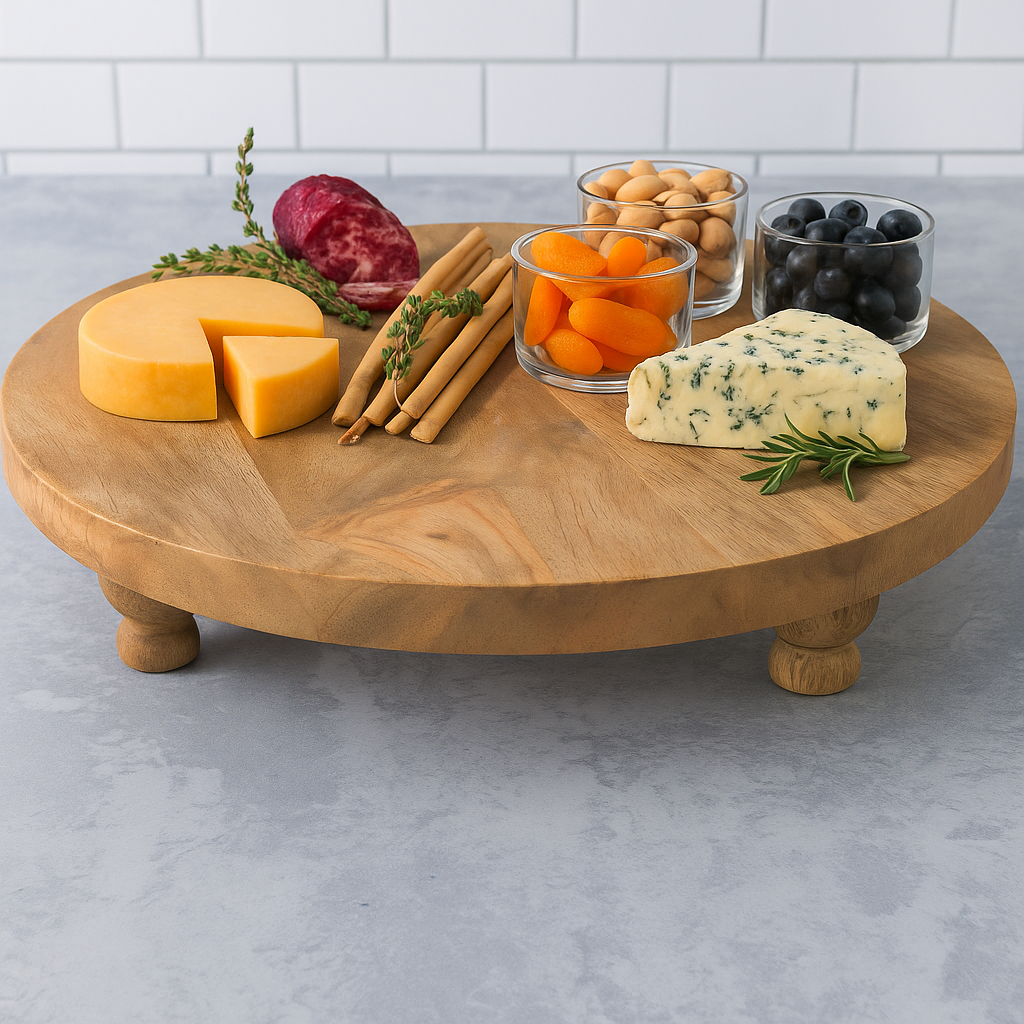 Hand-Crafted Farmhouse Round Footed Serving Board