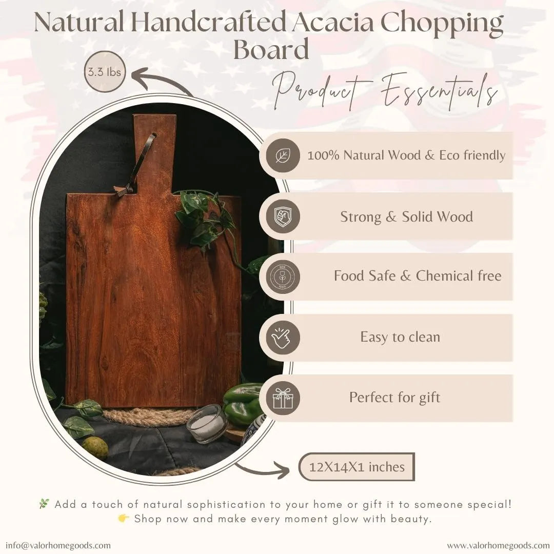 Handcrafted Acacia Wood Cutting Board with Handle-Large