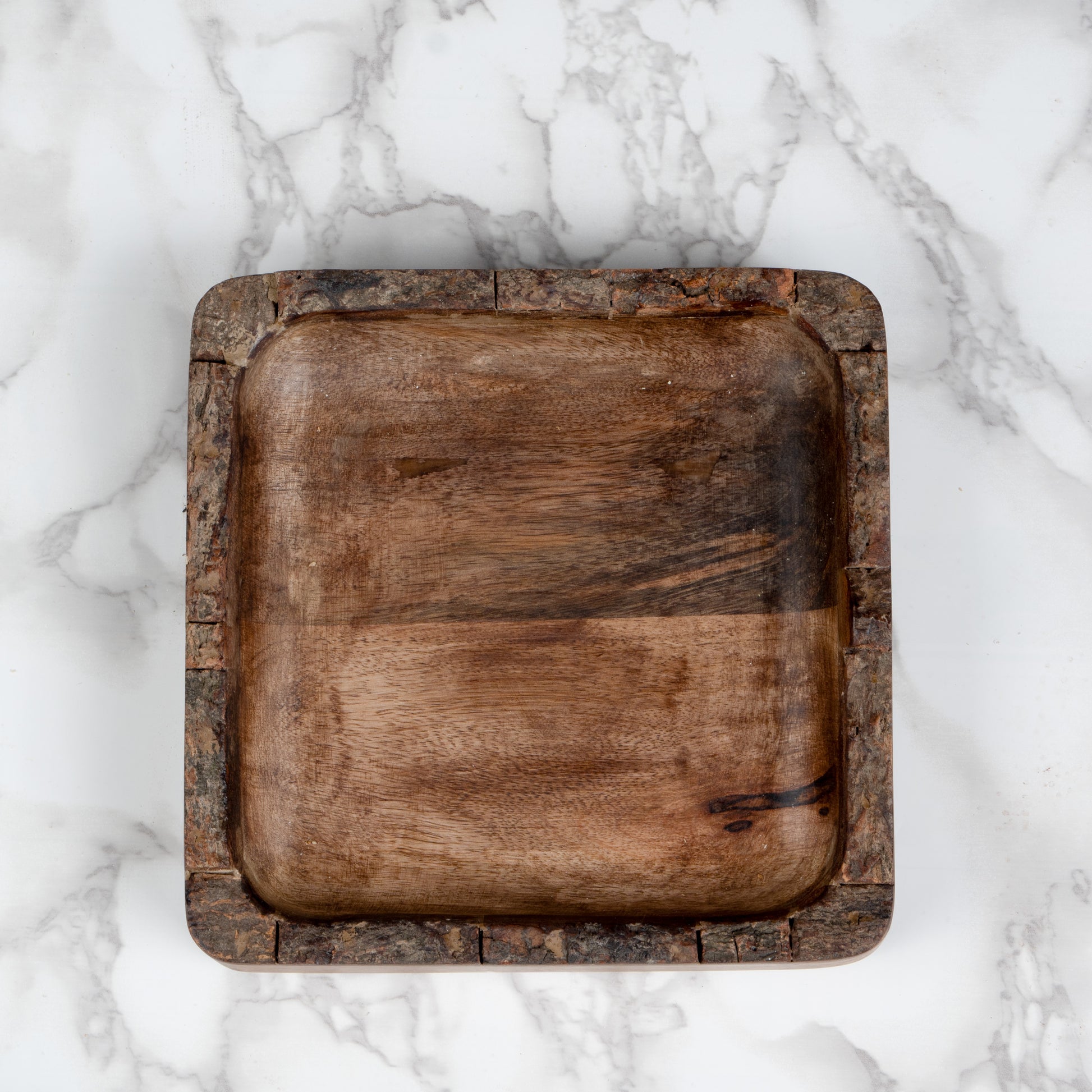 Food-Safe Rustic Wood Bark Small Serving Square Bowl