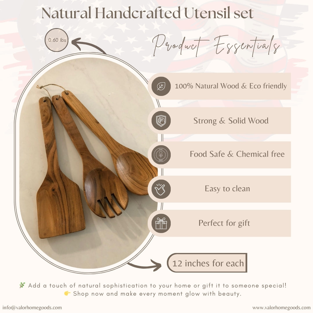 Handmade with Care: Each utensil is handcrafted by skilled artisans, ensuring a unique, rustic finish.