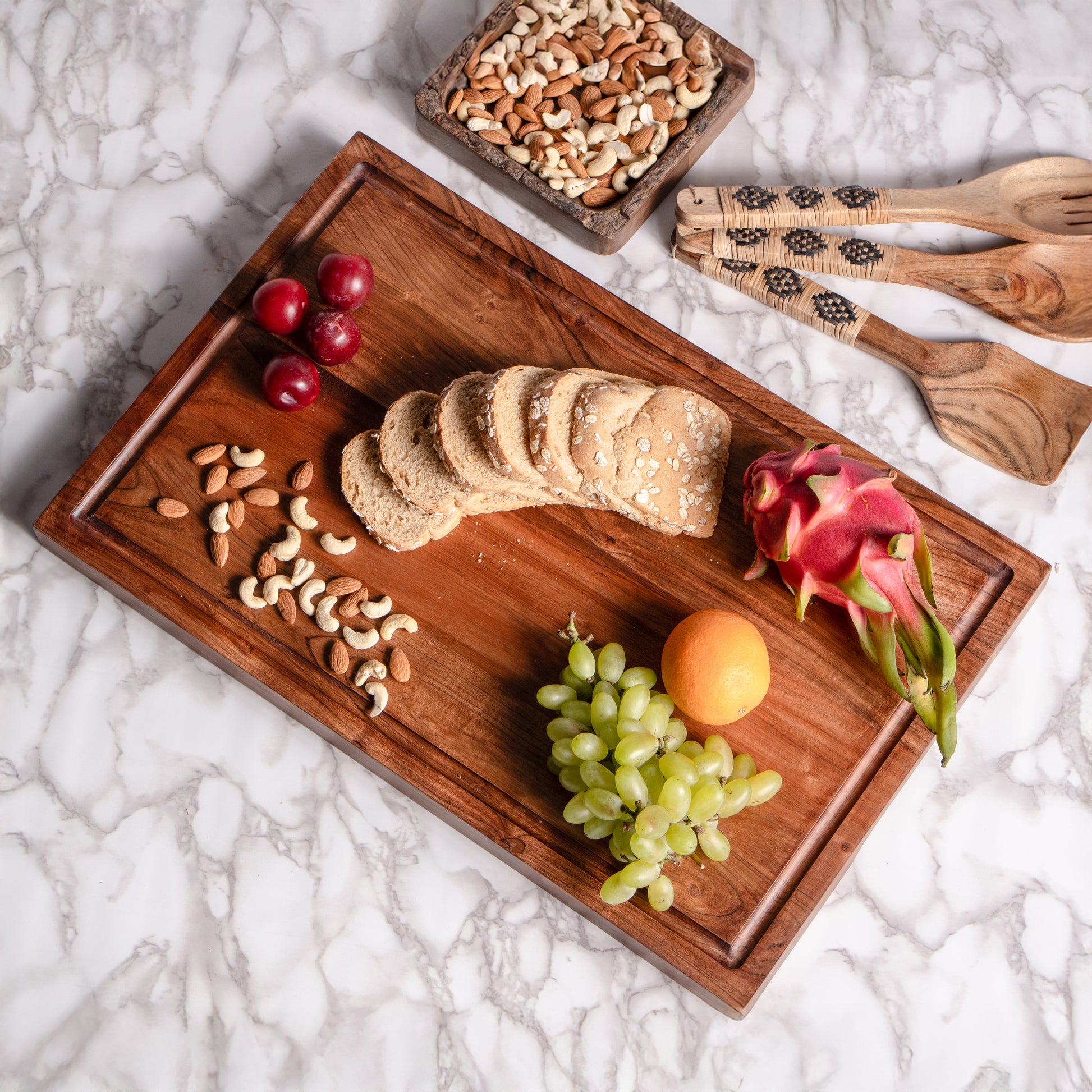 This cutting board measures generously to handle large ingredients with ease and is naturally resistant to knife marks and moisture. Its smooth finish enhances food presentation while the deep groove prevents spills, making cleanup simple. Easy to maintain with regular oiling, it combines functionality with timeless craftsmanship to support your kitchen needs day after day. Add this essential tool to your culinary collection and enjoy a reliable, attractive workspace built for professional and everyday use. Order now to bring durability and style to your kitchen routine.