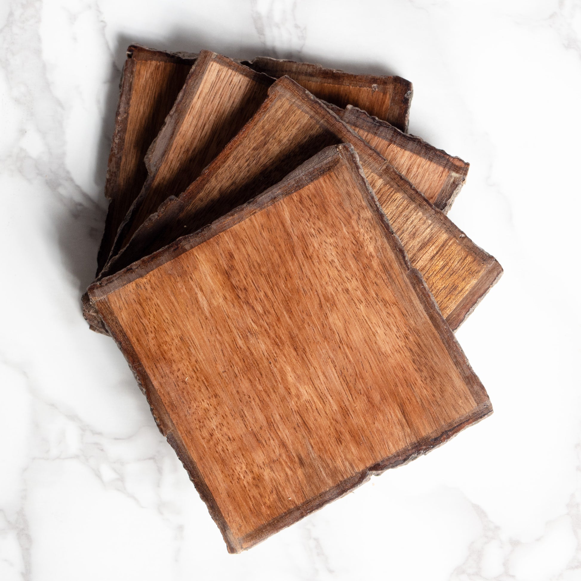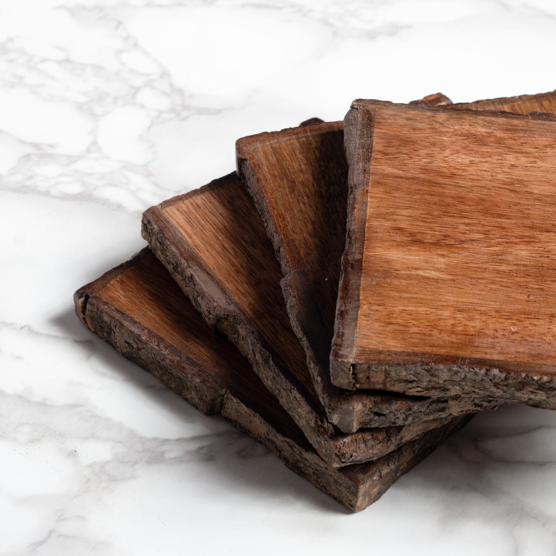 🪵 Handmade from natural wood – Each coaster retains its unique bark edge