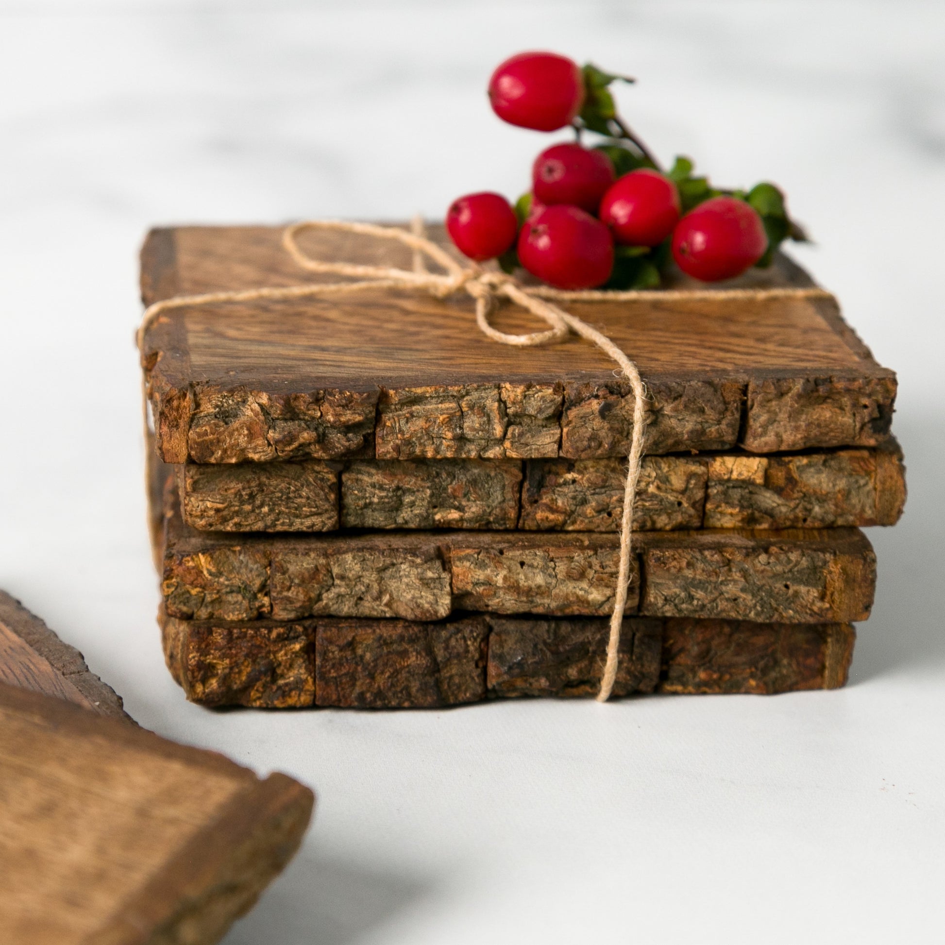 Enhance your home decor with our Set of four Rustic Wood Bark Drink Coasters, each crafted from live-edge wood to bring a touch of nature indoors. Perfect for your farmhouse, cabin, or coffee table, these handmade coasters not only protect surfaces but also spark conversation—snag yours today and add authentic charm to your gatherings!